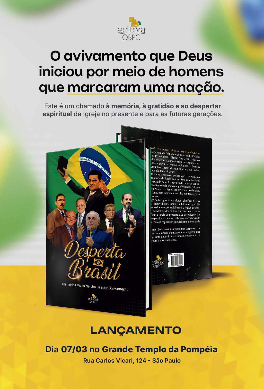 “Desperta Brasil: Memórias Vivas de um Grande Avivamento” não é apenas um livro — é um memorial espiritual. Uma obra que registra, com profundidade e emoção, os feitos poderosos de Deus na história da Igreja Evangélica Pentecostal O Brasil Para Cristo.